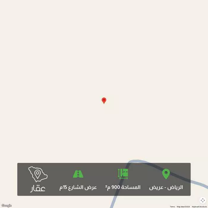 900 م² أرض في عريض، الرياض معروضة بسعر ٦٬٠٠٠ ريال، أقل بنسبة 98% من متوسط سعر الحي البالغ ٣٩٩٬٦٠٠ ريال. بناءً على 653 عقار مشابه.