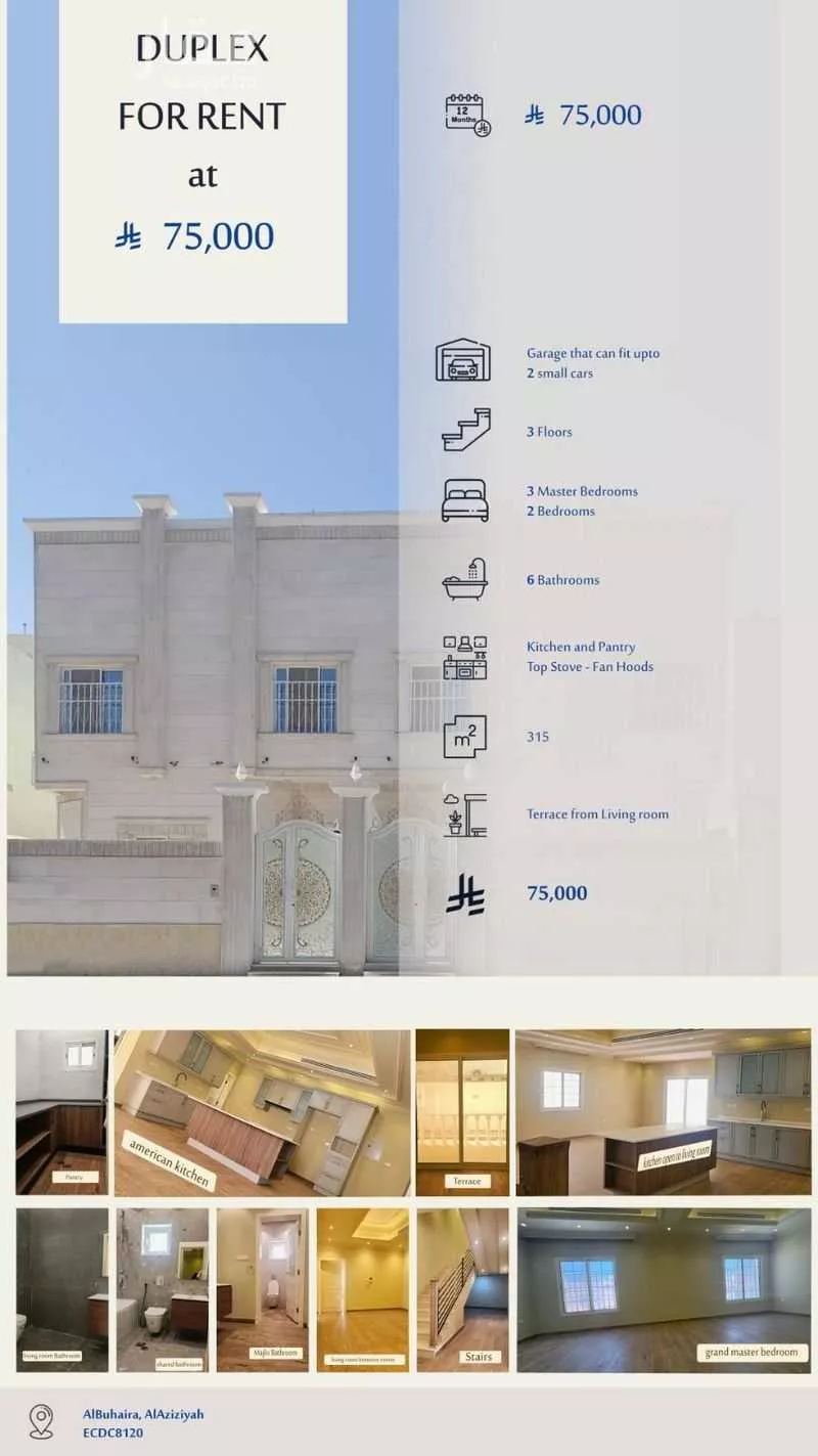 Browse 25 villas for rent in Al Buhairah, Eastern Province. Prices range from SAR 53,000 to SAR 140,000, with an average of SAR 77,640 per month.