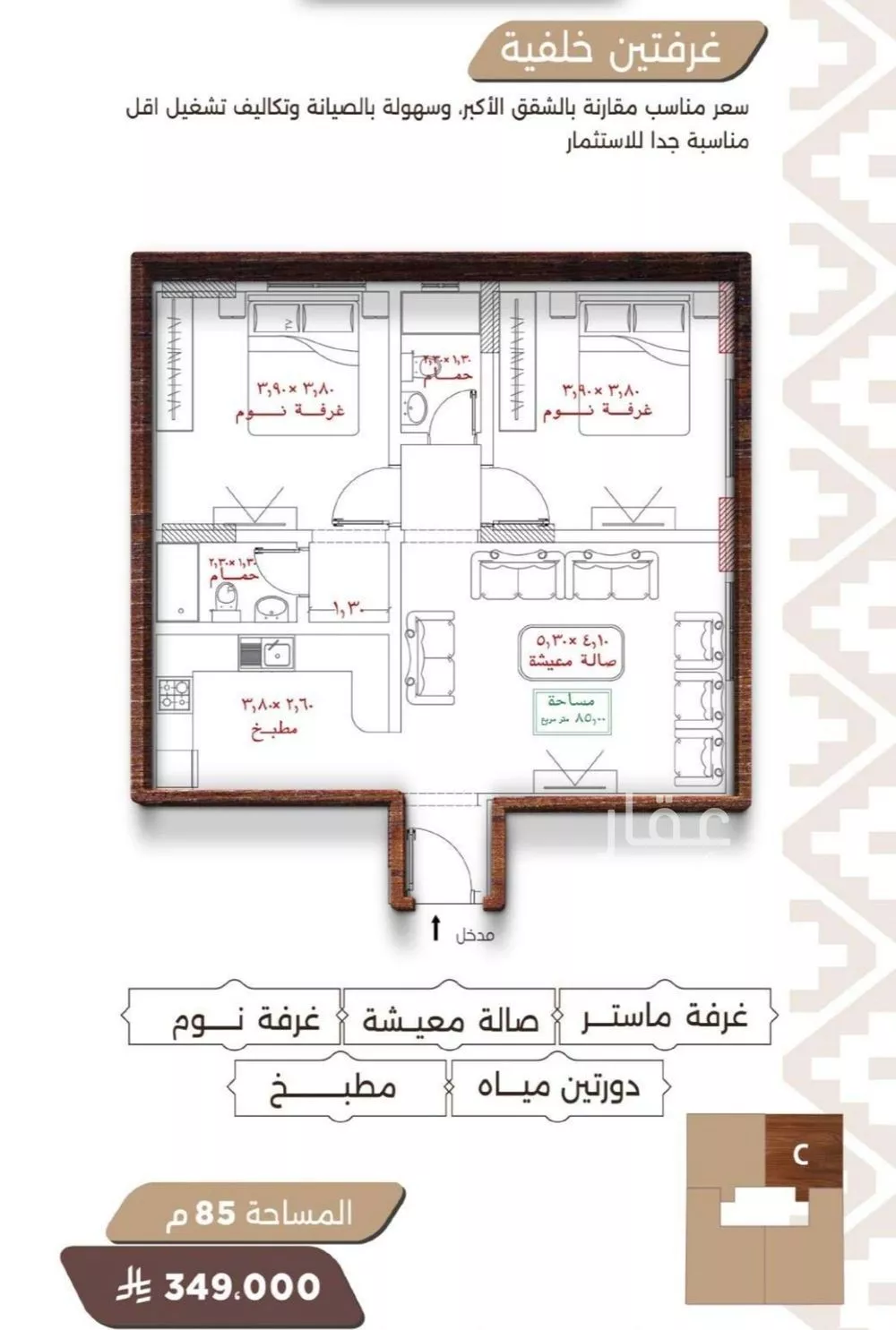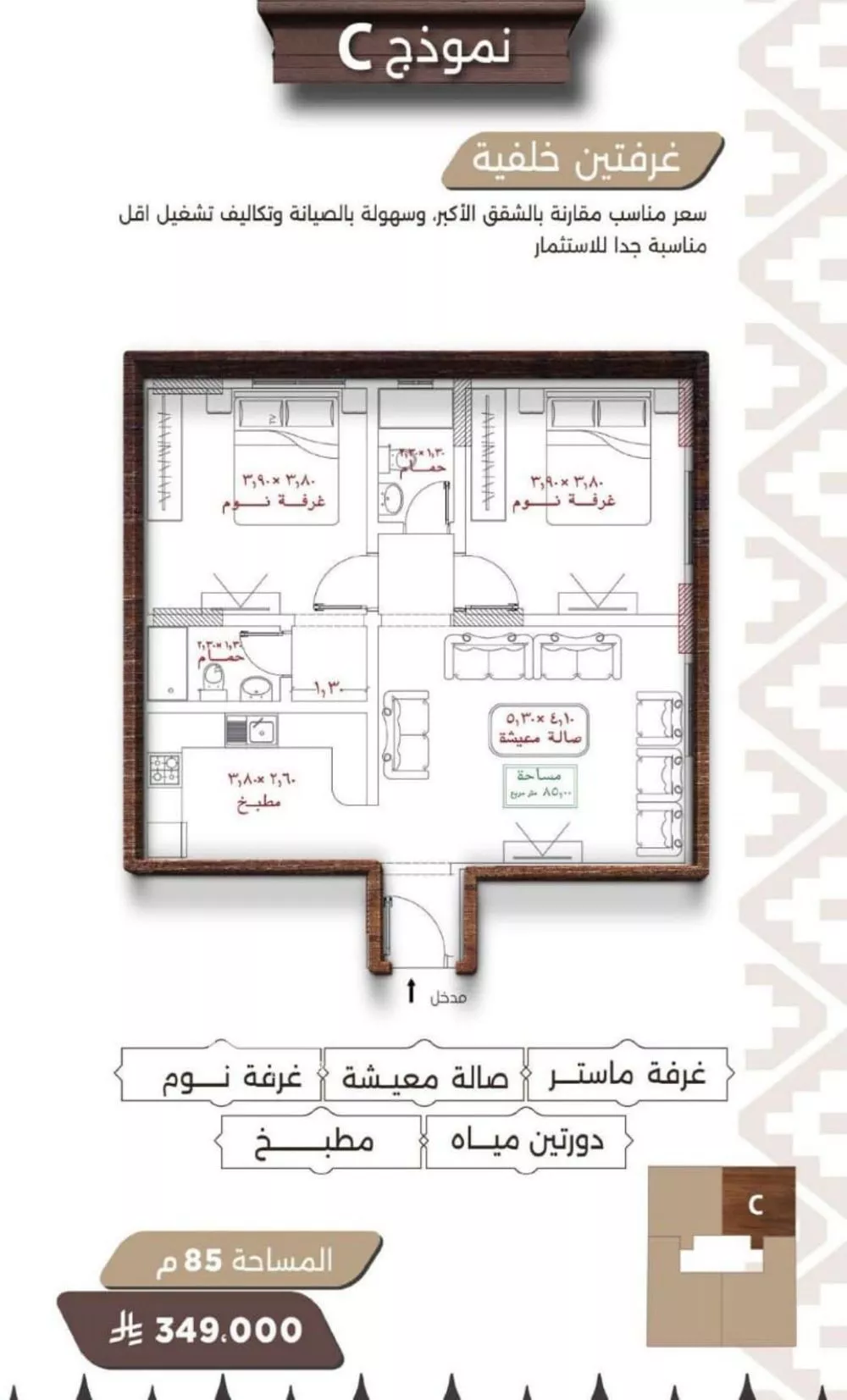 | 1 BR | 850,000 | 800,000–900,000 | 2 |