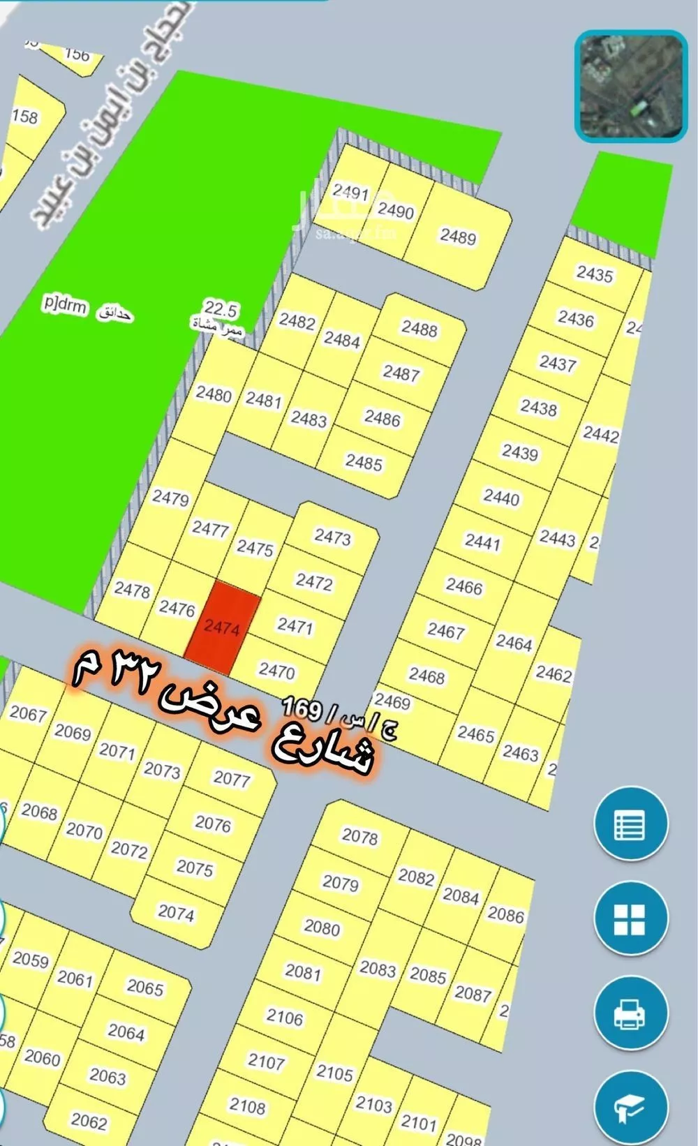 View on Aqarرقم القطعة ٢٤٧٤ المساحة ٩٠٠م٢ الاطوال : ٢٢.٥ م في ٤٠ م واجهة غربية شارع عرض ٣٢م بجوار حدائق السعر : ١,٢٠٠,٠٠٠