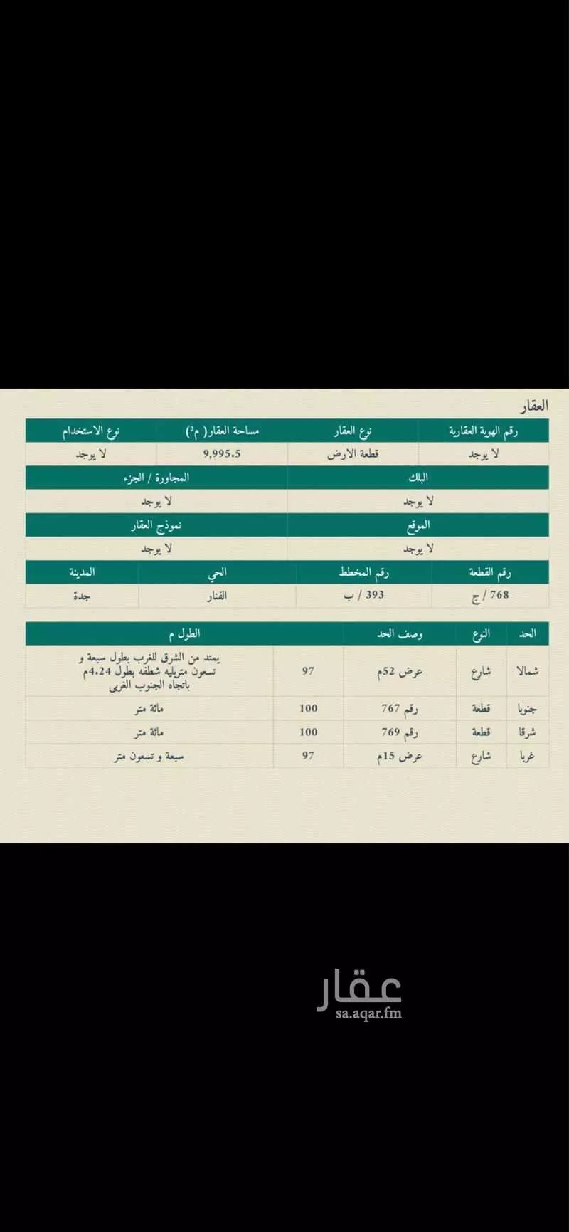 View on Aqarللبيع ارض تجاريه موقع مميز شمال مشروع سدايم والما شارعين شمالي ٥٢ وغربي ١٥ مساحه 9995.5 سعر المتر3500 ريال