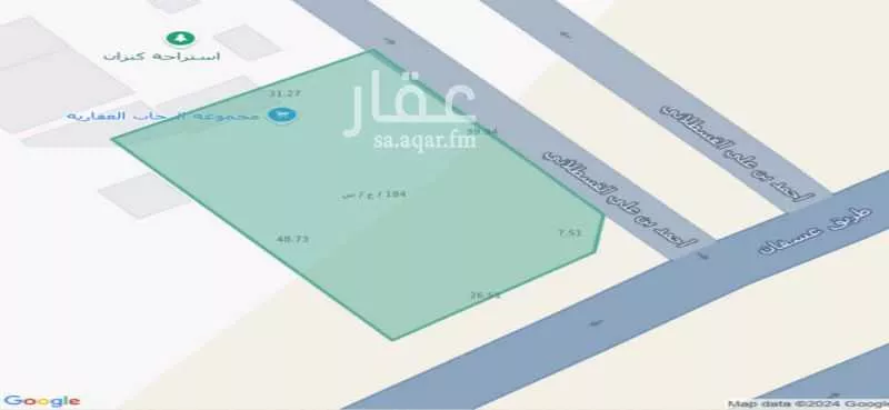 #للإيجار أرض _ تجارية / على طريق عسفان المساحة : - 1,447.17 م ² بواجهتين: - جنوبية على شارع عرض 52م² شرقية على شارع عرض 32 م²