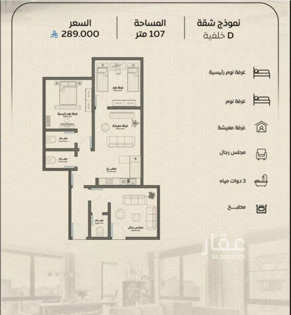 View on Aqarحي الريان شقة 3 غرف غرفة نوم رئيسية غرفة نوم صالة معيشة مجلس 3 دورات مياه مطبخ خزانات ماء مستقلة عداد كهرباء خاص موقف خاص كاميرات مراقبة اتحاد ملاك سنة مجانا شبكة الألياف البصرية تكيف سبيليت المساحة 1...