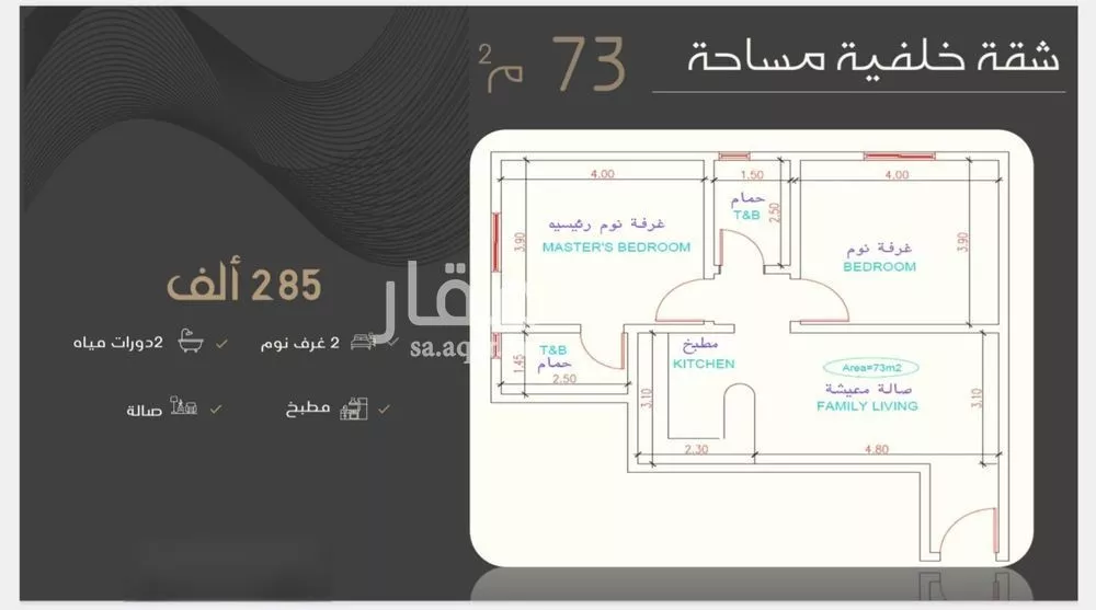 View on Aqar* غرفتين خلفية * السعر 285,000 * المساحة 73 م _____________ ___________________________ * مزايا الموقع * •ظهير طريق الملك فهد ( الستين ) . •يبعد عن مطار الملك عبدالعزيز 8 دقائق . •يبعد عن مجمع العرب 4...