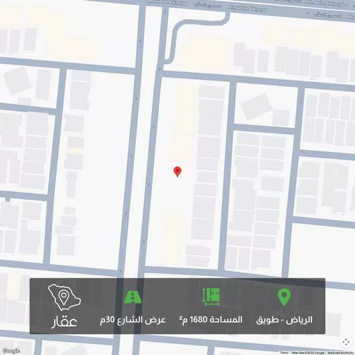 ارض حي طويق مساحتها 1680 عباره عن قطعتين مساحه القطعه 840 شارع عرض 60 شمالا 30 متر جنوبا 30 متر شرقا 28 متر غربا 28 متر