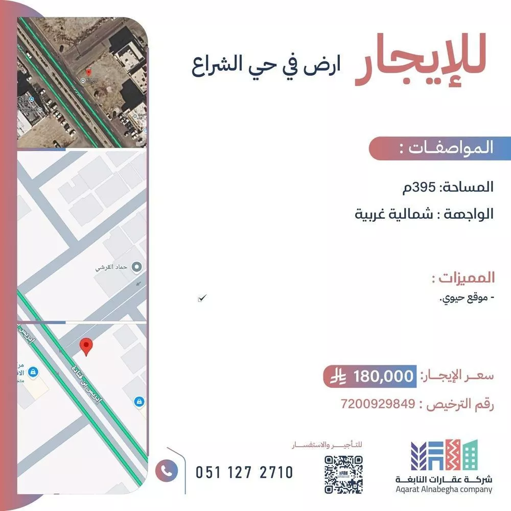 This 395 sqm land in Al Shiraa, Jeddah is listed at 180,032 SAR/year, 9% above the neighborhood median of 165,016 SAR. Based on 24 comparable listings.
