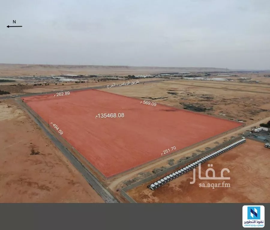 كود العقار 1880 ارض زراعية للايجار طريق الخرج الرياض تقع على ثلاث شوارع المساحة الاجمالية 135432 الاطوال 251*569/494*262 لمزيد من التفاصيل والعروض نرجو زيارة موقعنا الالكتروني نفوذ التطوير nufouth.com...