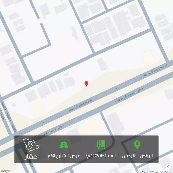 View on Aqarللبيع بحى النرجس غرب طريق عثمان ارض تجاري على بن جلوي 1200 م² قطعتين ٦٠٠+٦٠٠ شارعين ١٠ غربي و ٦٠ جنوبي https://maps.app.goo.gl/homWj7k1JbYp6i7e6?g_st=ic