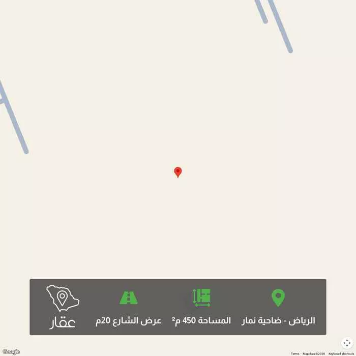 View on Aqarالبيع قطعه ارض سكني في حي نمار مخطط هــ مساحه 450متر واجيه غربيه شارع 15 متر أطواله 12,5في 36 البيع 550 الف البيع كاش مباشر مع المالك https://maps.app.goo.gl/tWwt7QAjPZvd9pSv6?g_st=iw
