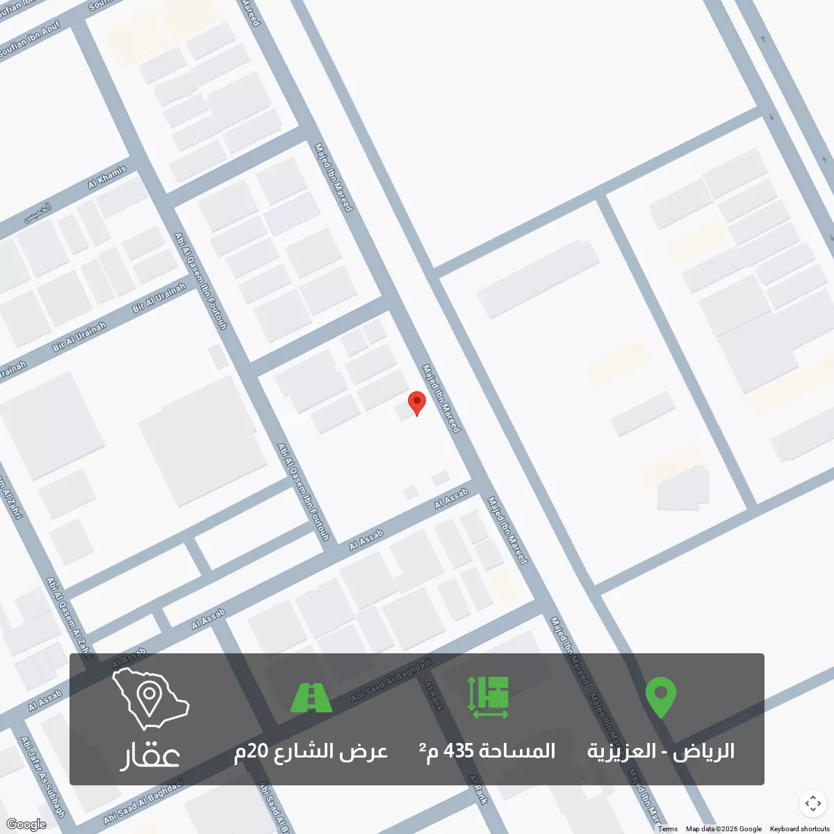 View on Aqarللبيع ( سور ) ارض سكنية بحي العزيزية مساحة 435 م شارع 20 شرقي اطوالها 15 م على الشارع والعمق 29 م السعر / البيع 2300 ريال للمتر