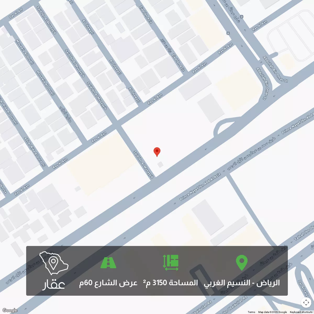 View on Aqar� فرصة استثمارية مميزة – أرض تجارية للبيع أرض على 3 شوارع قريبة من محطة مترو حسان بن ثابت وقريبة من محطة مترو النسيم المساحة: 3,150 متر مربع الواجهات والشوارع: • 60م جنوبي • 15م غربي • 15م شمالي السوم...