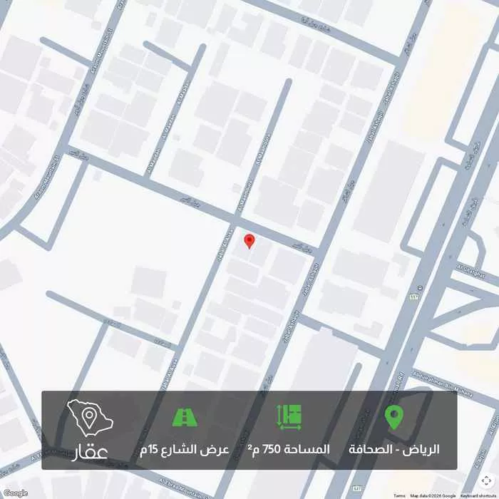 View on Aqarللبيع فيلا بقيمة ارض زاوية في حي الصحافة مساحة 750م شمالية شرقية شارع شمالي عرض 15م بطول 25م شارع شرقي عرض 15م بطول 30م سعر المتر 12الف