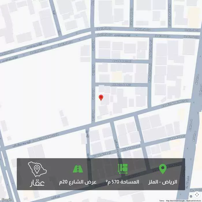 View on Aqarأرض للبيع – حي الملز للبيع أرض سكنية في حي الملز بموقع مميز وقريب من جميع الخدمات. • المساحة: 570.6 م² • البيع على قيمة أرض مناسبة لبناء سكن أو استثمار، الحي يتميز بسهولة الوصول وقربه من الطرق الرئيسي...