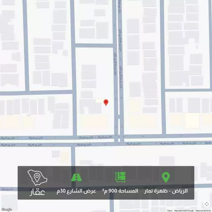 This 900 sqm land in Dhahrat Namar, Riyadh is listed at 3,150,000 SAR, 20% above the neighborhood median of 2,617,800 SAR. Based on 30 comparable listings.