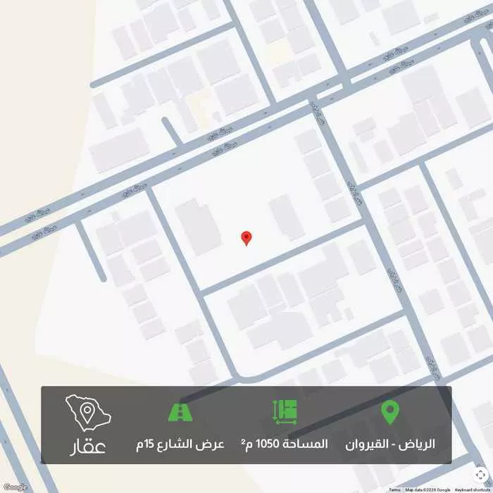 View on Aqarللبيع ارض سكنية في شمال الرياض حي القيروان مساحة 1050 م جنوبية على شارع 15 وجزء منه 10 في مخطط 2030 أ قطعة رقم 2332 اطوالها 30 على الشارع في عمق 35 طبيعة الارض ممتازة شرق مخطط العجلان قيت قريبه من طري...