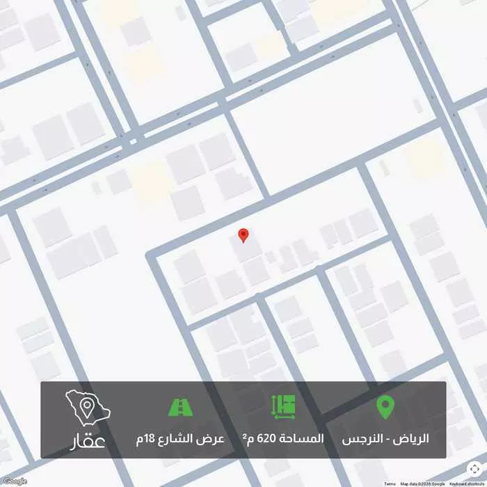 View on Aqarللبيــــــــع قطعتين ارض سكنيه بحي النرجس شمال طريق الملك سلمان مخطط قمه النرجس مساحة ٦٢٠م اطوالها ٢٠×٣١ شرقيه شارع ١٨م وغريبة ١٨م البيع 6 الاف الموقع غير دقيق