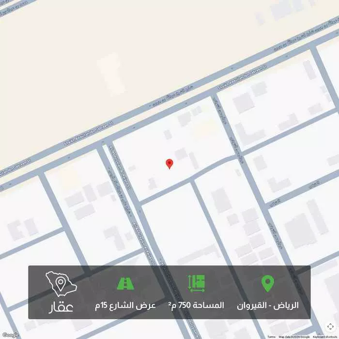 View on Aqarللبيع ارض سكنيه بحي القيروان ب الرياض قطعه رقم 967 المساحه 750 م شارع عرض 15. الطول على الشارع 25