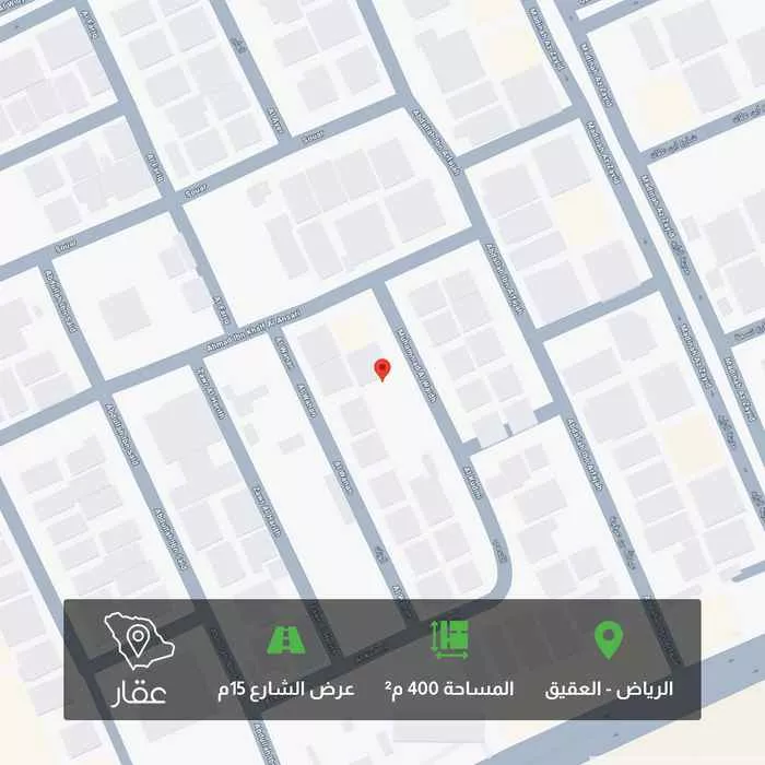 This 400 sqm land in Al Aqiq, Riyadh is listed at 3,200,000 SAR, 33% below the neighborhood median of 4,750,000 SAR. Based on 43 comparable listings.