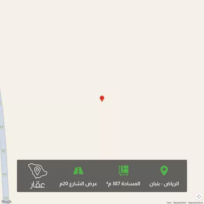 View on Aqarللبيع أرض سكنية في حي الخير – مخطط الدكاترة (رقم 3483) رقم القطعة: 530 المساحة: 387.50 م² الأطوال: 12.5 م × 31 م الشارع: 20 متر – غربي تبعد حوالي 100 متر عن طريق الملك خالد السوم 950,000 ريال للتواصل ...