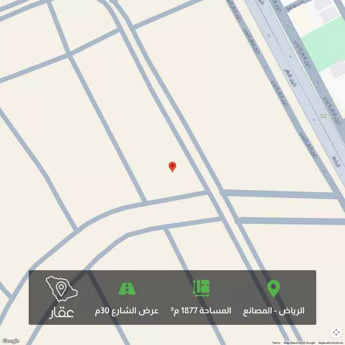 View on AqarS1240 ارض سكنية بالقرب من طريق الحائر بحي المصانع مساحة إجمالية : 1877.95