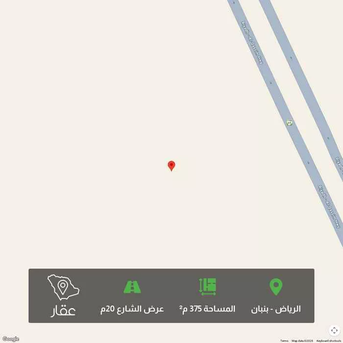 This 375 sqm land in Banban, Riyadh is listed at 550,125 SAR, 32% below the neighborhood median of 804,562.5 SAR. Based on 944 comparable listings.