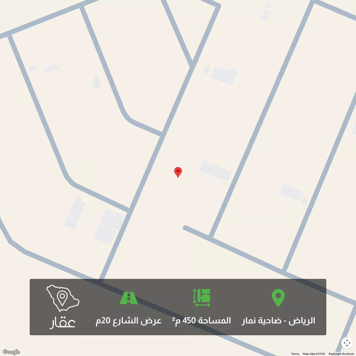 View on Aqarللبيــــــــع قطعه ارض سكنيه بحي نمار مخطط ٣٠٢٠ المساحه ٤٥٠م الوجهة شماليه شارع ٢٠م