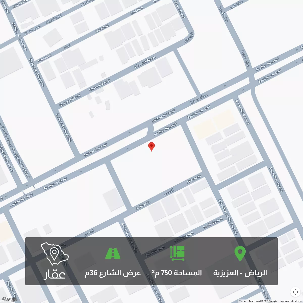 This 750 sqm land in Al Aziziyah, Riyadh is listed at 1,725,000 SAR, 15% below the neighborhood median of 2,025,000 SAR. Based on 27 comparable listings.