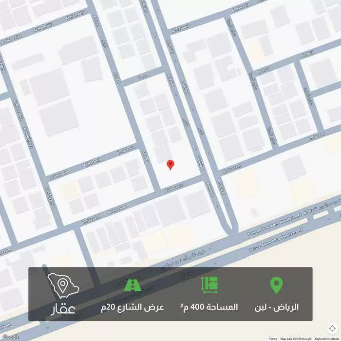 This 400 sqm land in Laban, Riyadh is listed at 3,000,000 SAR, at the neighborhood median of 3,007,500 SAR. Based on 22 comparable listings.