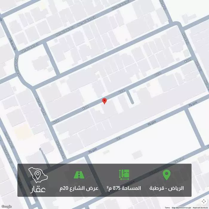 View on Aqarالبيع فيلا بقيمة ارض بحي قرطبة -المساحة: 875 م -الشارع : 20 م -الواجهة : جنوبية -الاطوال : 25&35 البيع 6300 للمتر