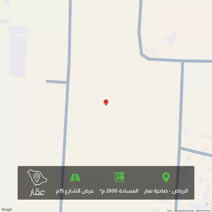 This 2000 sqm land in Dahiat Namar, Riyadh is listed at 700,000 SAR, 7% below the neighborhood median of 750,000 SAR. Based on 439 comparable listings.
