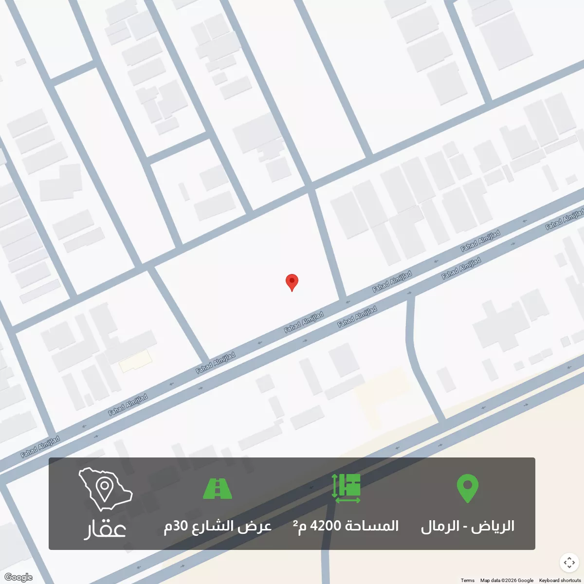 View on Aqarارض مساحتها ٤٢٠٠ متر على شارع ثلاثين جنوب وشرق ممر ١٠ متر وشمال شارع ٢٥ الاطوال ٧٠ على الشارع في ٦٠ بالداخل مجزاة الى قطعتين تجاري وخمس قطع سكني البيع كامل او مفرق