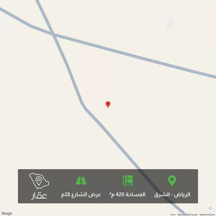 View on Aqarللبيع قطعة ارض سكنية في حي المشرق منح شرق الرياض —— — - رقم المخطط : 3129 - رقم القطعة : 494 / 1 — - المساحة : 420 متر - عرض الشارع : 28 متر - الواجهة : جنوبية - الأطوال : 14 في عمق 30 —— — - ملاحظ...
