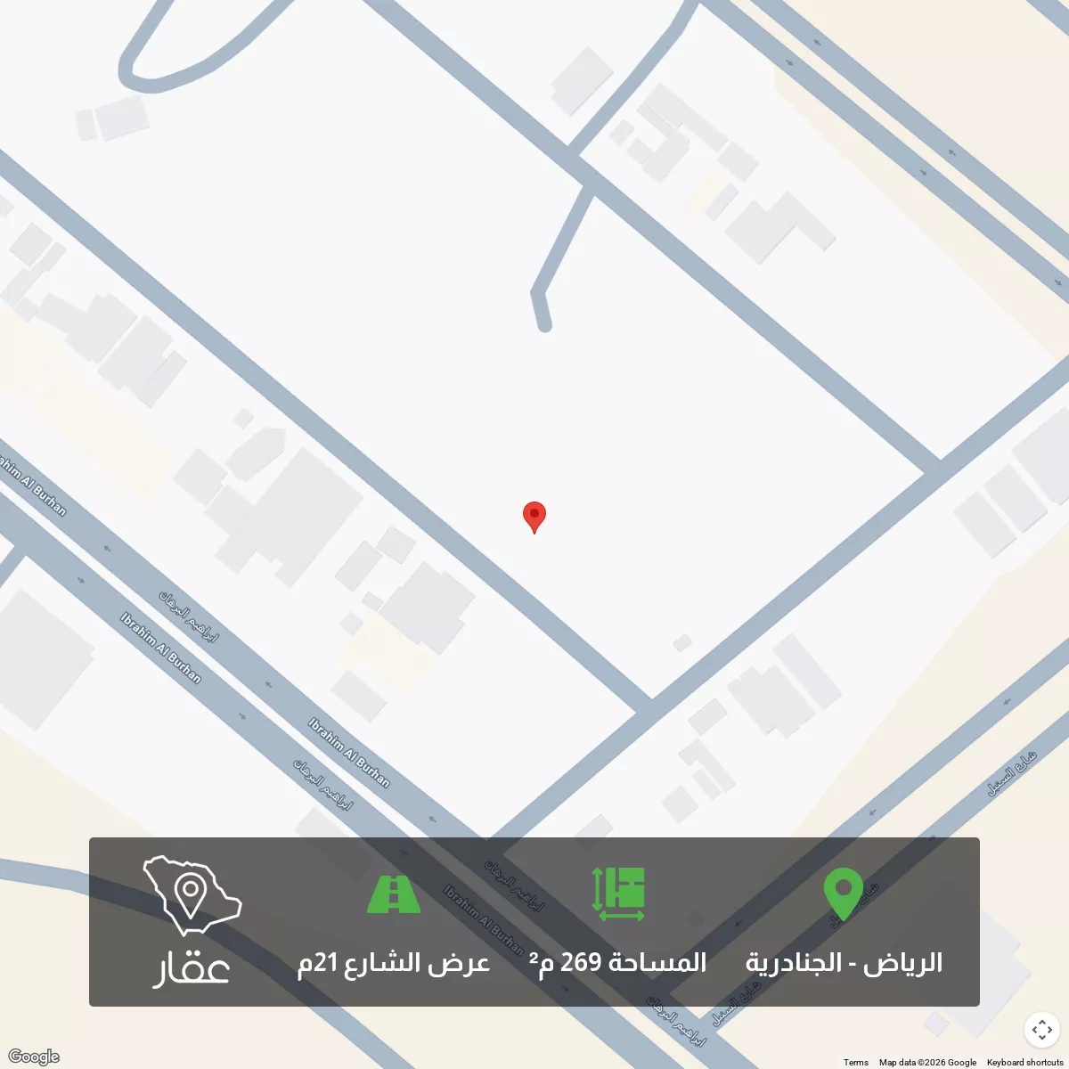 This 269 sqm land in Al Janadriyah, Riyadh is listed at 48 SAR, 100% below the neighborhood median of 777,000 SAR. Based on 132 comparable listings.