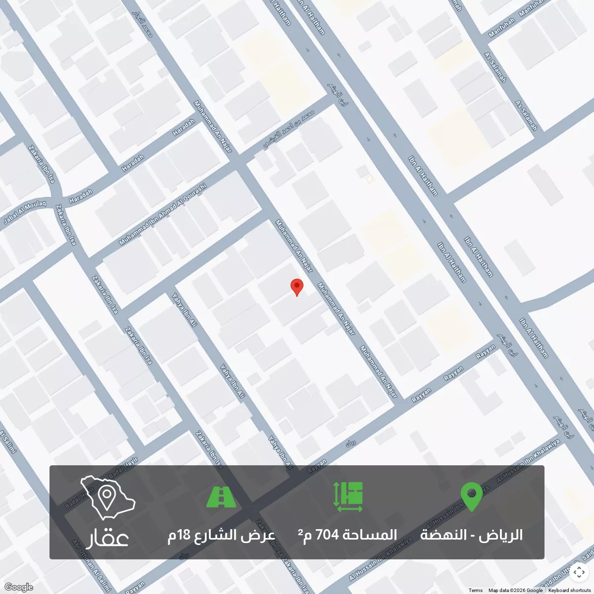 This 704 sqm land in Al Nahda, Riyadh is listed at 60,000 SAR, 97% below the neighborhood median of 2,103,000 SAR. Based on 42 comparable listings.