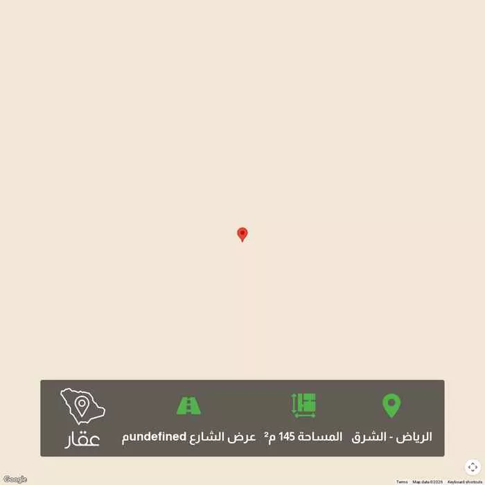 This 145 sqm land in Ash Sharq, Riyadh is listed at 1,860 SAR, 100% below the neighborhood median of 598,950 SAR. Based on 650 comparable listings.