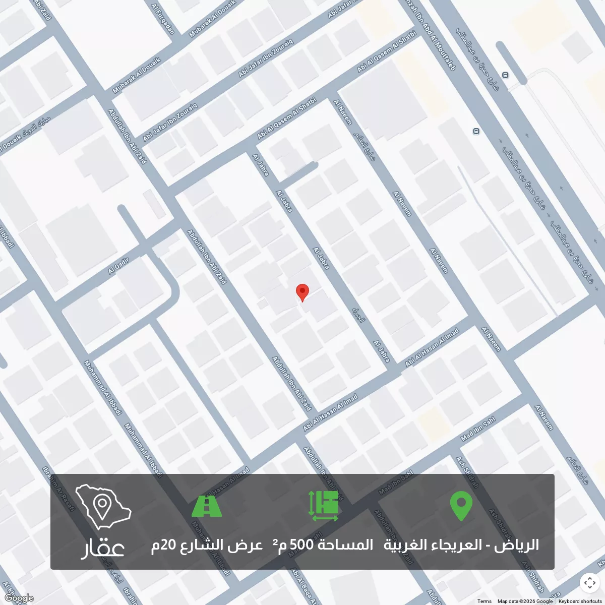 View on Aqarالسلام عليكم للبيع ارض في البديعة ( 500) المساحه شارع جنوبي العرض 20 الطول 25 ممنوع تواصل المسوقين والوسطاء البيع والسعر مليون و600 الف رقم التواصل
