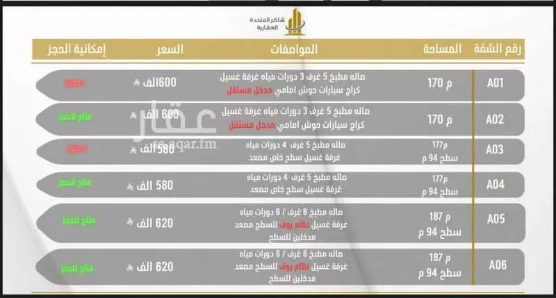 Browse 18 apartments for sale in Warqan, Madinah. Prices range from SAR 480,000 to SAR 650,000, with an average of SAR 586,667.