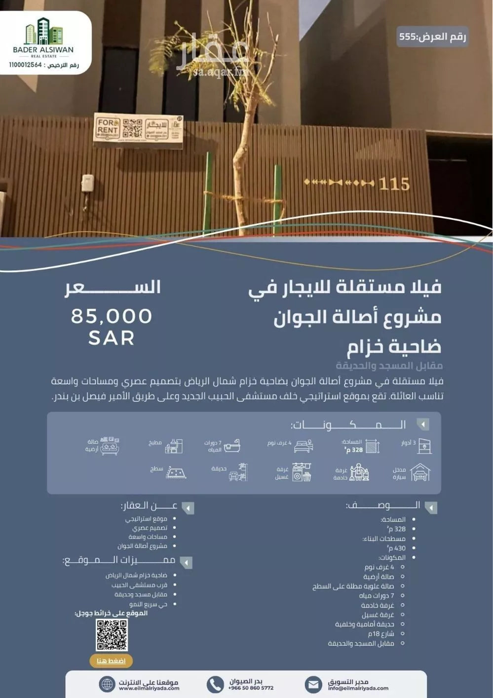 Browse 72 villas for rent in Al Aridh, Riyadh. Prices range from SAR 45,000 to SAR 2,040,000, with an average of SAR 177,597 per month.