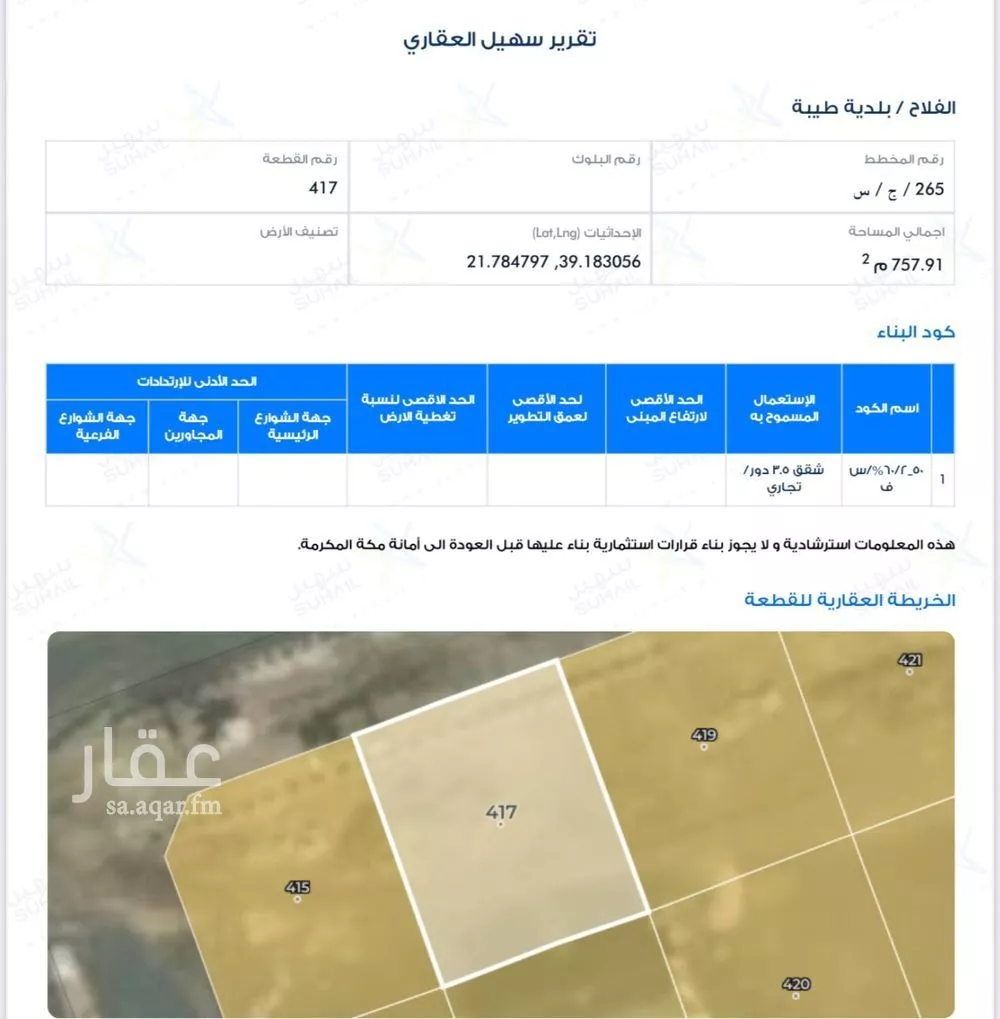 Land·Aqar309 ㎡면적이 정확하지 않을 수 있음