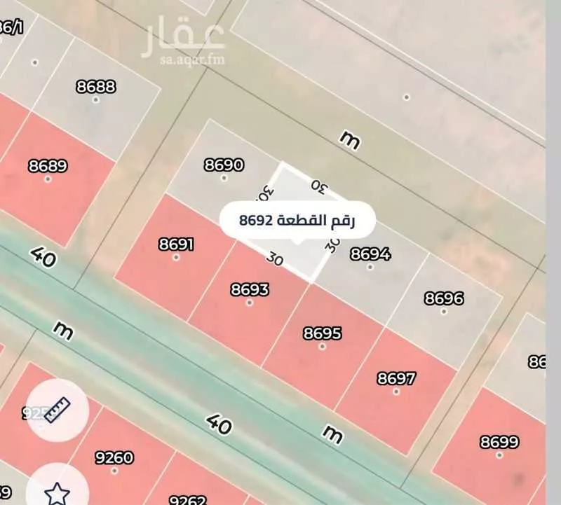 Aqar پر دیکھیںأرض للايجار رقم الأرض 8692 رقم مخطط 2745 حي عريض تقع على شارع عرض 30 م مساحة الأرض 450 متر مربع التواصل على الوتساب فقط