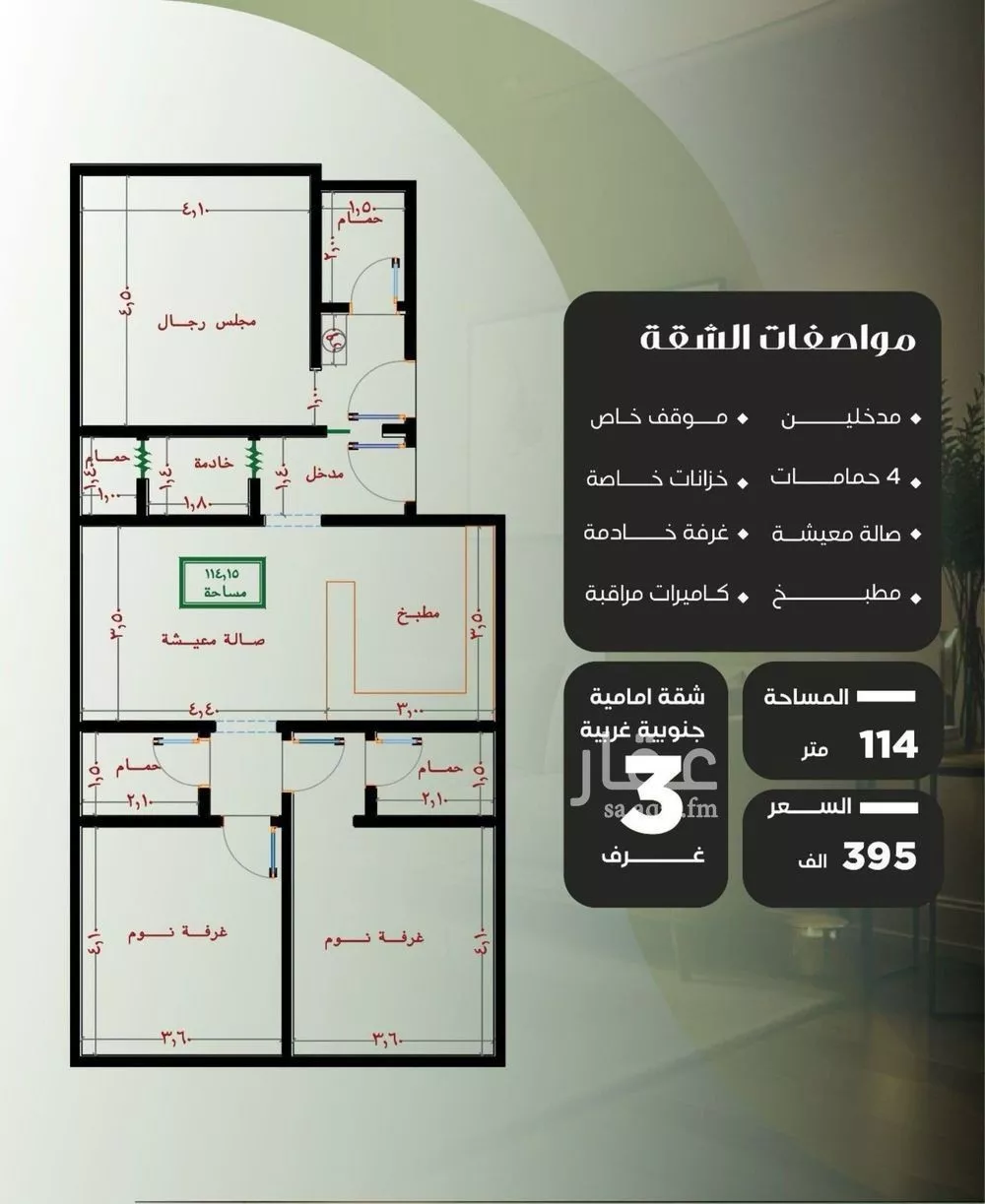 Aqar پر دیکھیں*ـــــــــــــــــــــــــــ* *شقة اماميه* *3 غرف شارع* *المساحة 114* *السعر 395* *ــــــــــــــــــــــــــــــــ* *كاميرات مراقبة* *دخول ذكي* *شبابيك واسعه* *اسقف عالية* *موقع مميز قريب من الخدمات ...